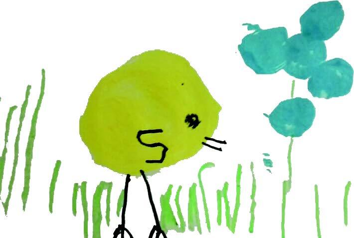 Une petite histoire de poussins et de couleurs, à illustrer grâce à la technique du tampon en carotte ou en pomme de terre.