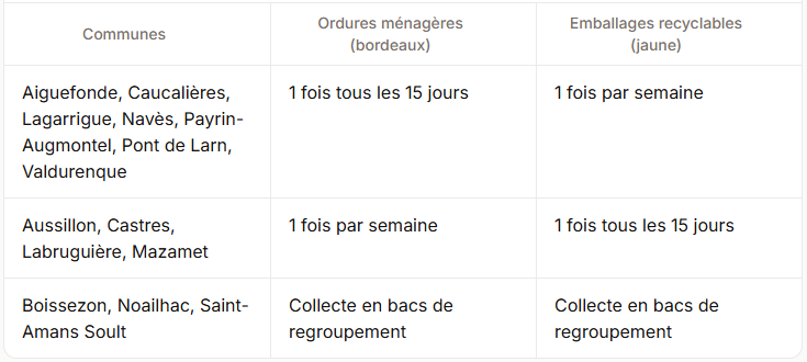 - Calendriers de collecte : à télécharger ici