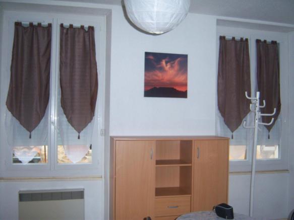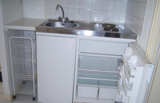 26m², au rdc, dans un immeuble bien entretenu et calme, kitchenette équipée avec plaques électriques et frigo, meubles haut et bas table, chaises, table basse, étagère de rangement, commode. Salle de bain avec douche, vasque et toilettes.