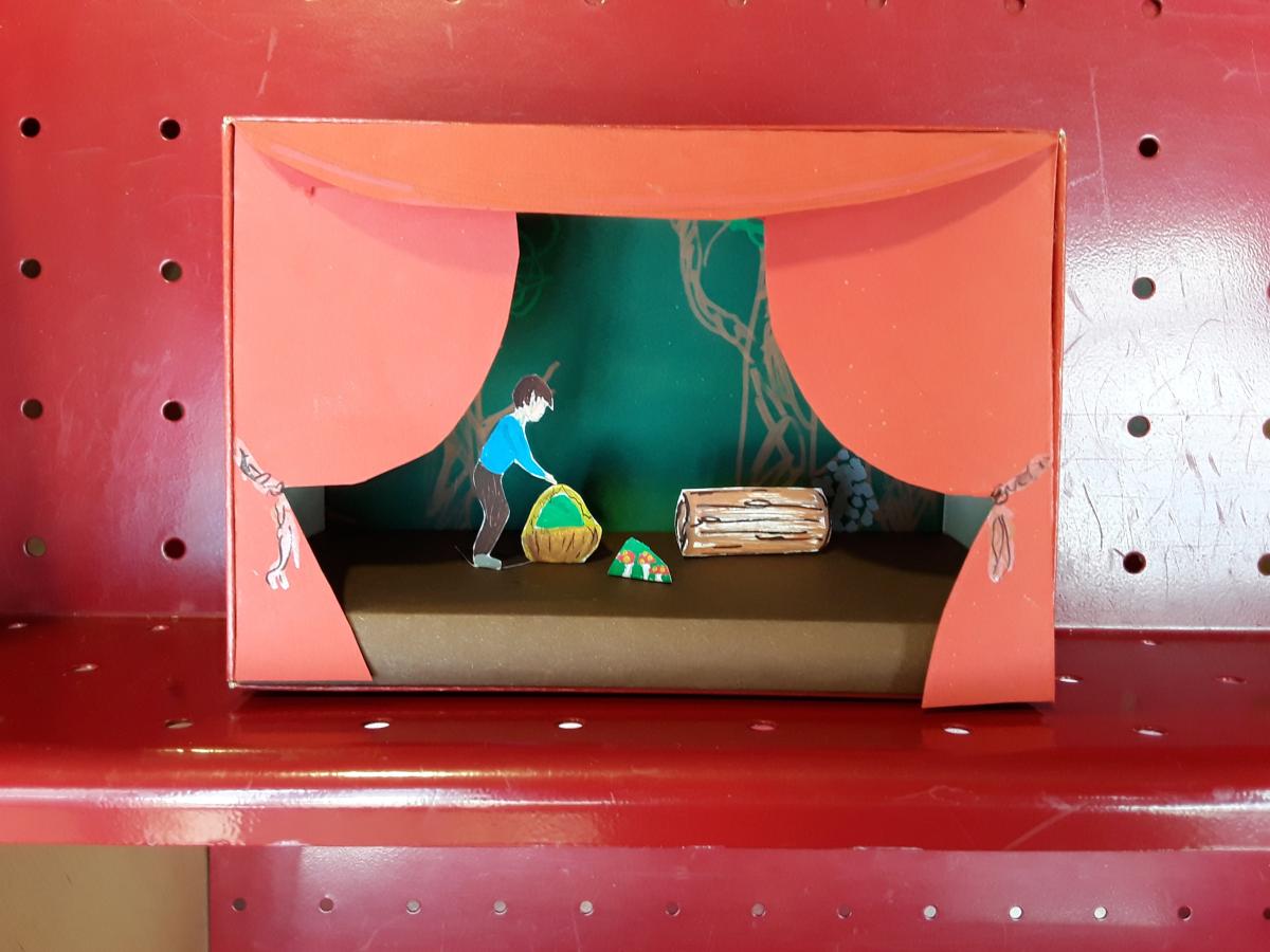Avec une boite à chaussures, des ciseaux et un peu d’imagination, crée un théâtre de papier, son décor et ses personnages.