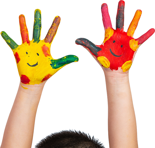 Joue avec la peinture et découvre comment l’empreinte de ta main et de tes doigts peut se transformer en poules et poussins. N’oublie pas ton tablier !